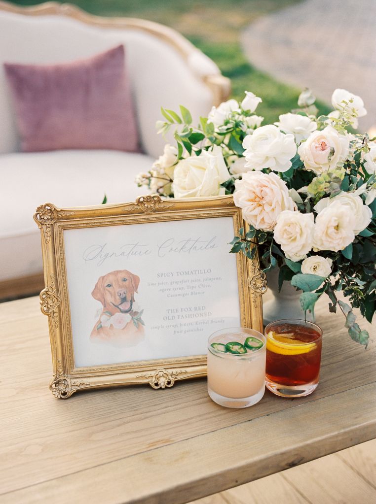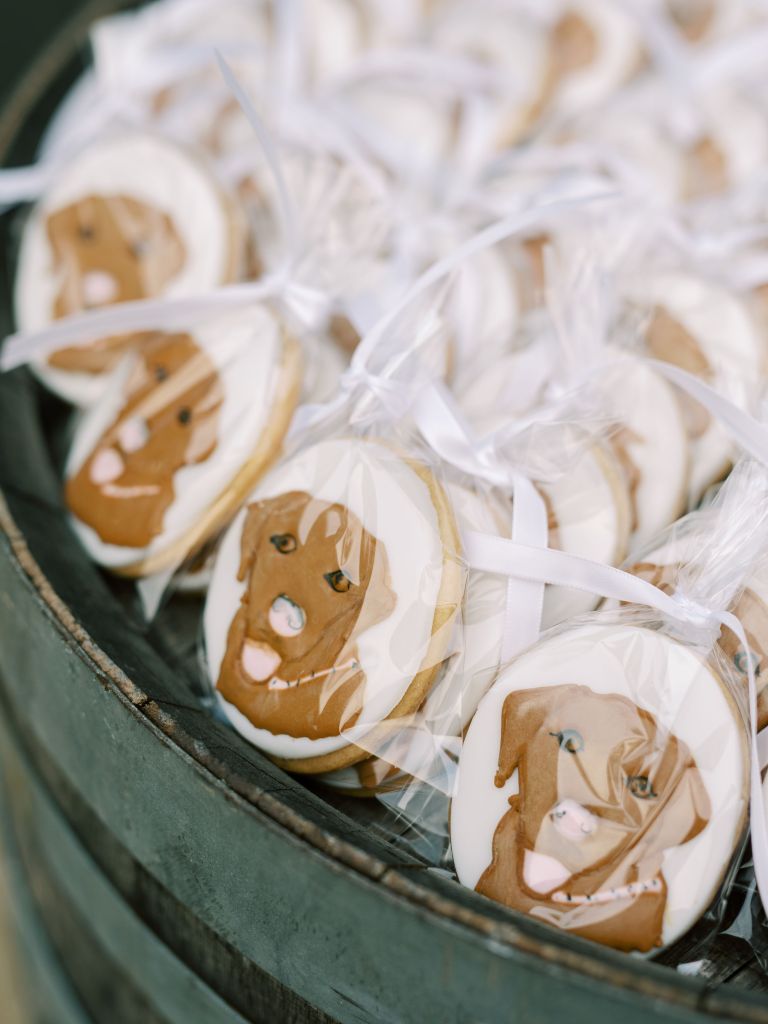 Delivered to your doorstep or wedding venue. Wherever you are located this is a perfect turnkey solution to include your dog on your day! We offer a customized bridal box for the pet in your wedding. It contains a turn-key package in which you can easily add the special touch of having your dog be part of your day. Each set comes with a set of cocktail napkins with your dog’s image, individually packaged cookies created in a likeness to your dog’s image with a custom favor tag, an elegant white leash and collar with gold clasp or elegant pearl leash, choice of bridal accessories for your pet, a wedding themed toy for your pet, assorted signage based upon your pet, and custom wedding map that includes your dog, as well as wedding table signs that incorporate your pet. We also include a custom created wedding cake topper of your dog’s breed for an added touch if so desired. Other options include bridal party keepsakes. Each bridal box comes with a custom wedding tote.